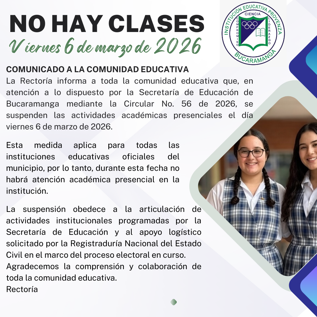 En cumplimiento del Decreto 4807 de 2011 y la Política de Gratuidad Educativa establecida por el Ministerio de Educación Nacional, la Institución Educativa Provenza informa a la comunidad que la educación en los niveles de preescolar, básica y media es totalmente gratuita. No se realizan cobros por matrícula, pensiones, servicios académicos o actividades obligatorias.